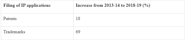 Domestic filing for patents has increased from 22% in 2013-14 to 34% in 2018-19. Awareness programmes for IP are being conducted at schools, colleges, universities, R&D institutes and industry clusters. Multi-pronged strategies have been used to address the issue of pendency in IP applications, including manifold augmentation of manpower and streamlining of procedures. These strategies have paid rich dividends, and there has been a sharp jump in the disposal of IP applications: